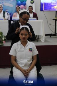 La cofia simboliza el compromiso, la ética, la responsabilidad y la dedicación que cada estudiante asume al elegir la enfermería como profesión.